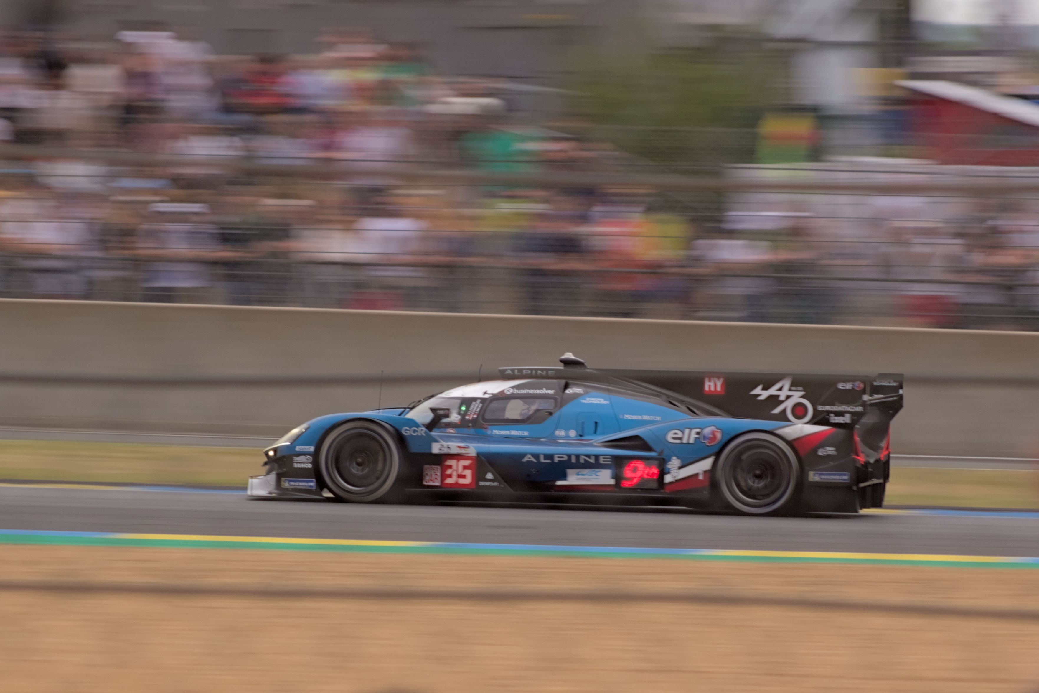 Pour effacer le grillage qui sépare les autos des spectateurs, j’ai joué sur la profondeur de champ, et sur le flou de mouvement. Des fois ça a marché, on ne voit quasiment pas les mailles.