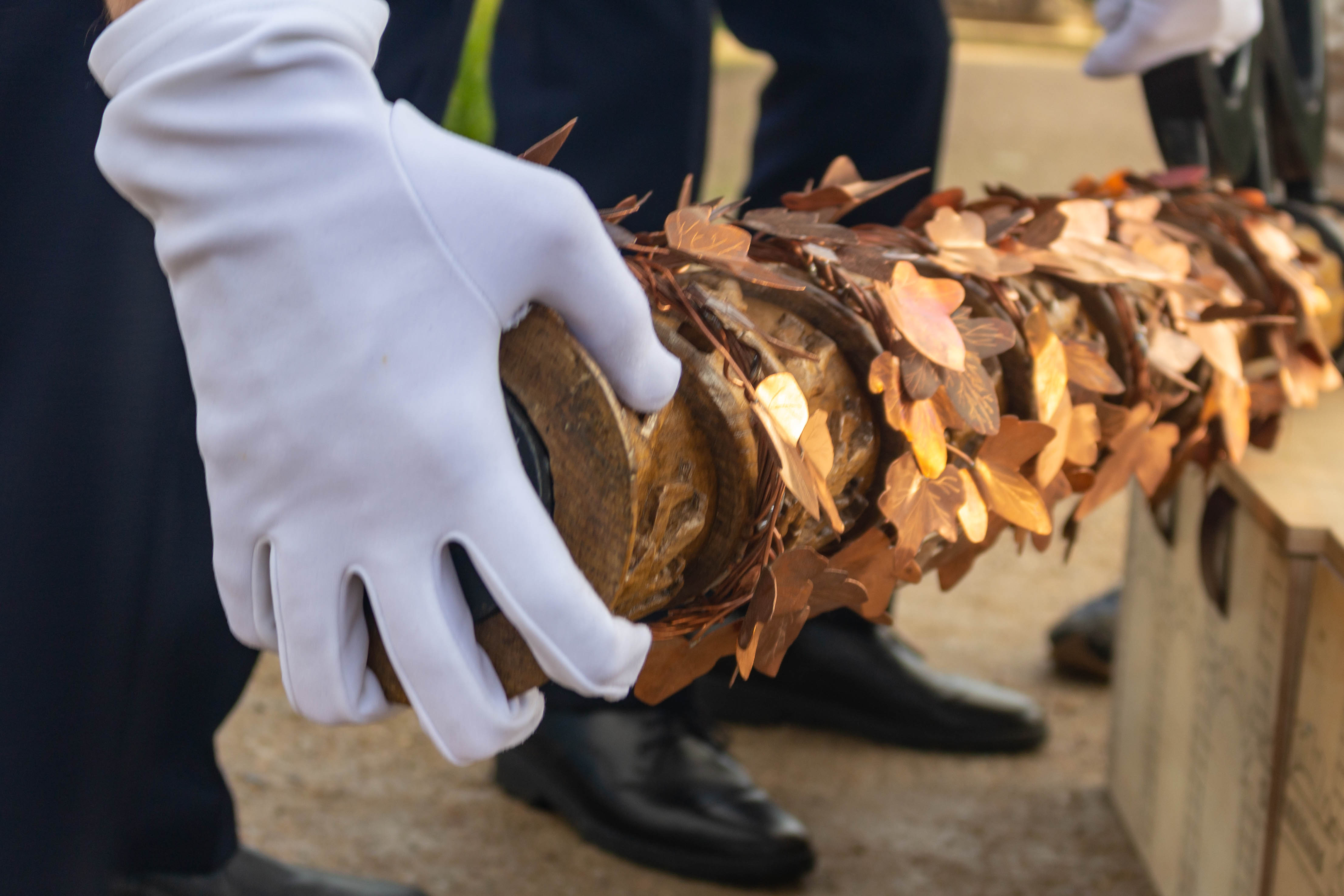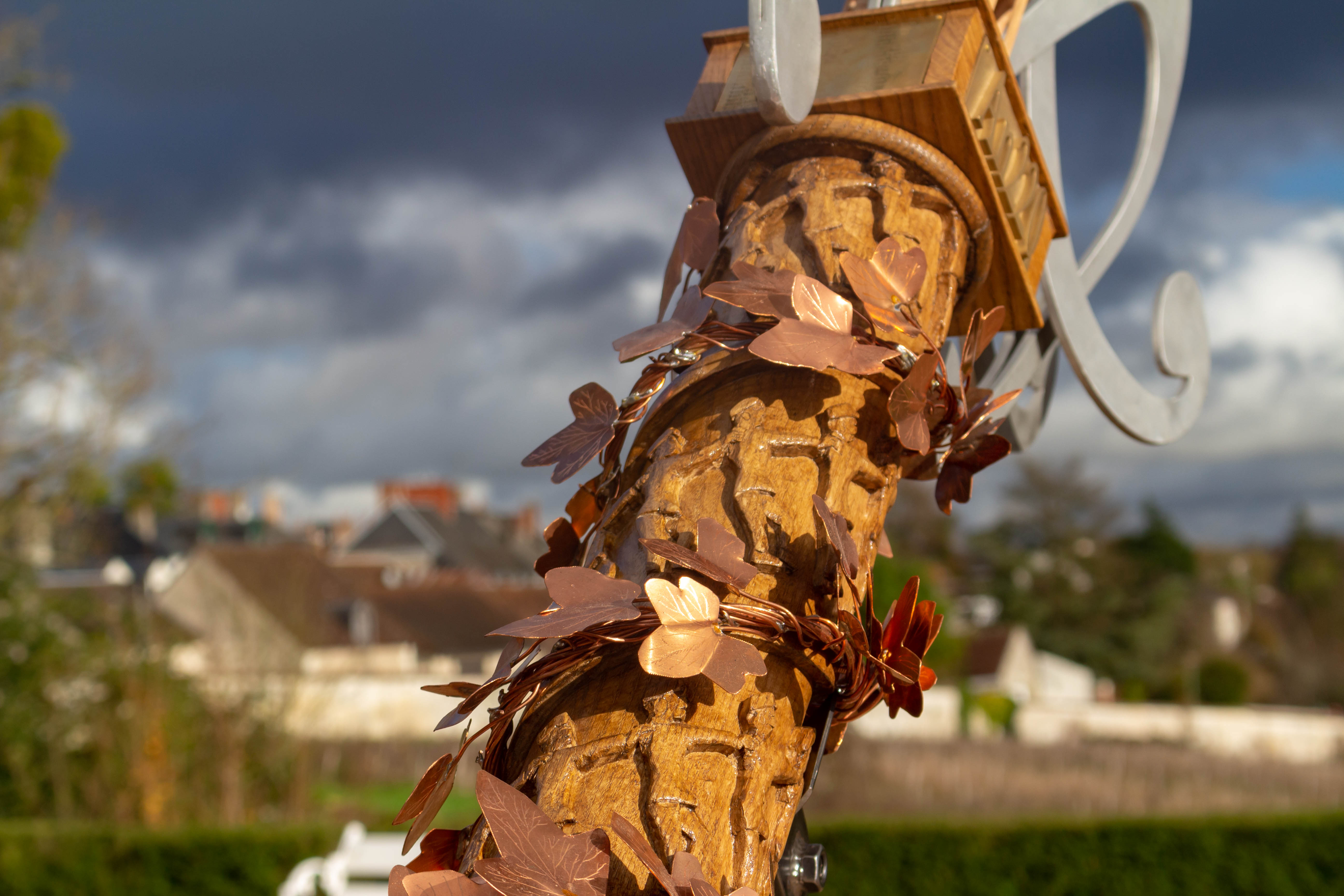 - Le lierre : façonné en tôle de cuivre, découpé à la main et brasé.