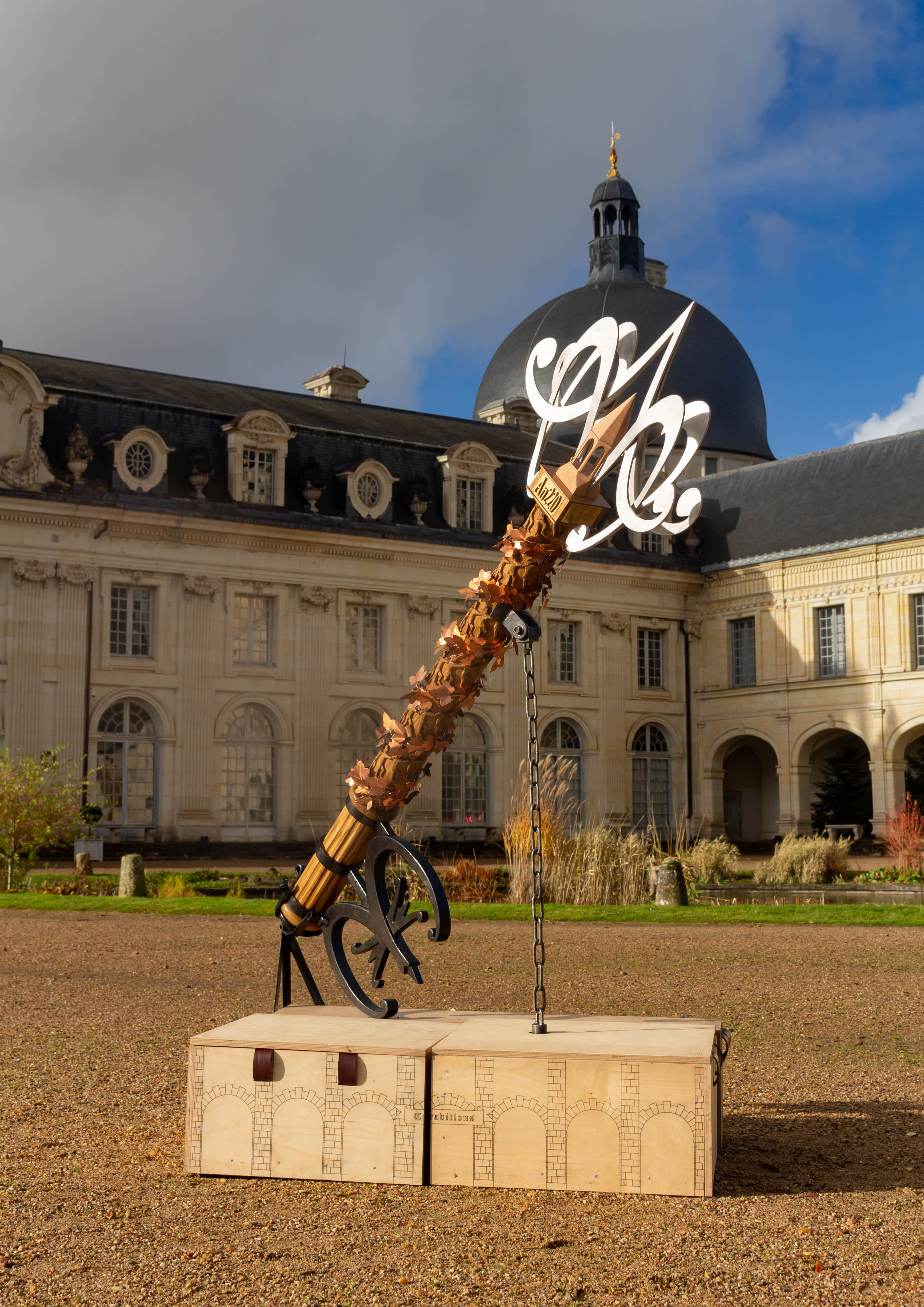 La clef est transportée en plusieurs parties, puis assemblée sur place. Pour ça, elle a des boîtes qui servent aussi de support / présentoir.
