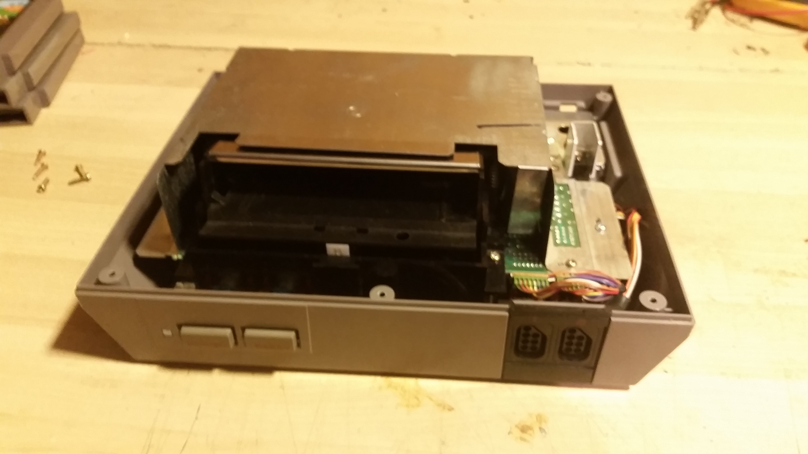 After having made the necessary changes (actually, snipping a leg from an integrated circuit) I put back the console in its place :