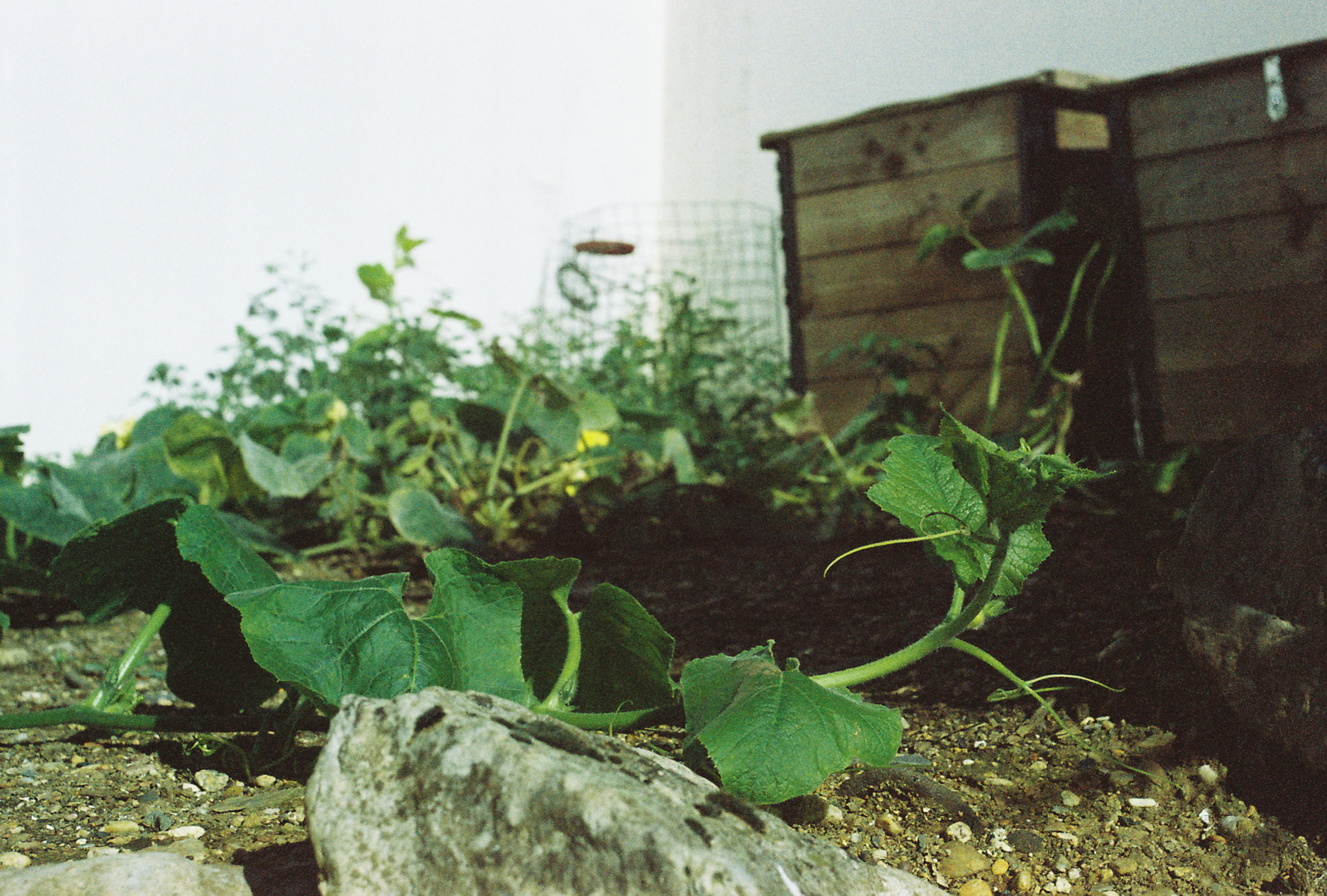 Ce plant de courge a poussé tout seul depuis le compost collectif de quartier, et tout le monde l'a laissé vivre sa vie.