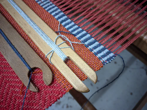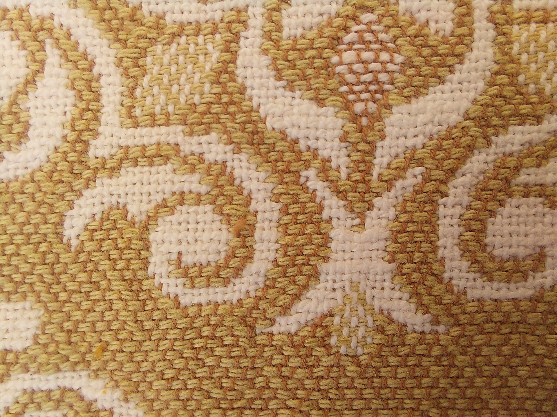 La particularité de ce métier, c’est qu’il peut, uniquement à travers le mode d’enchevêtrement des fils du tissu, faire apparaître des motifs complexes dans ce dernier :