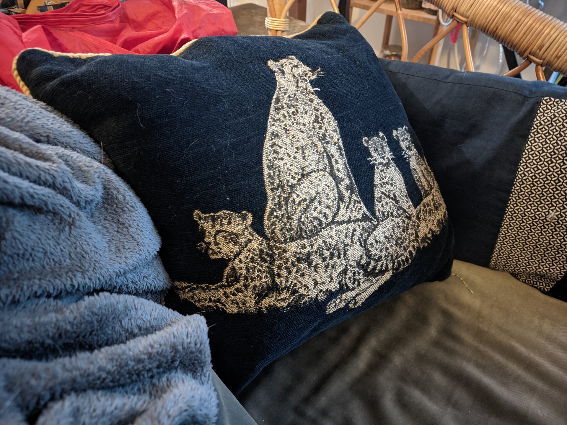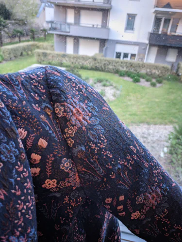* Paradoxalement, je trouve ce rideau assez kitsch : c’est facile d’en faire trop avec cette technique, je trouve