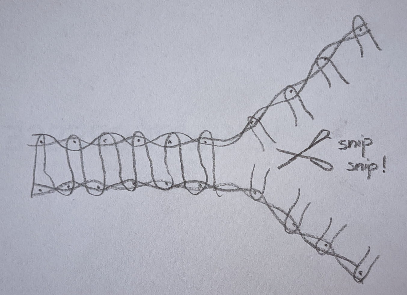 Ensuite, on tisse deux tissus reliées entre eux par des fils lâches, puis on sépare les deux tissus en les coupant.