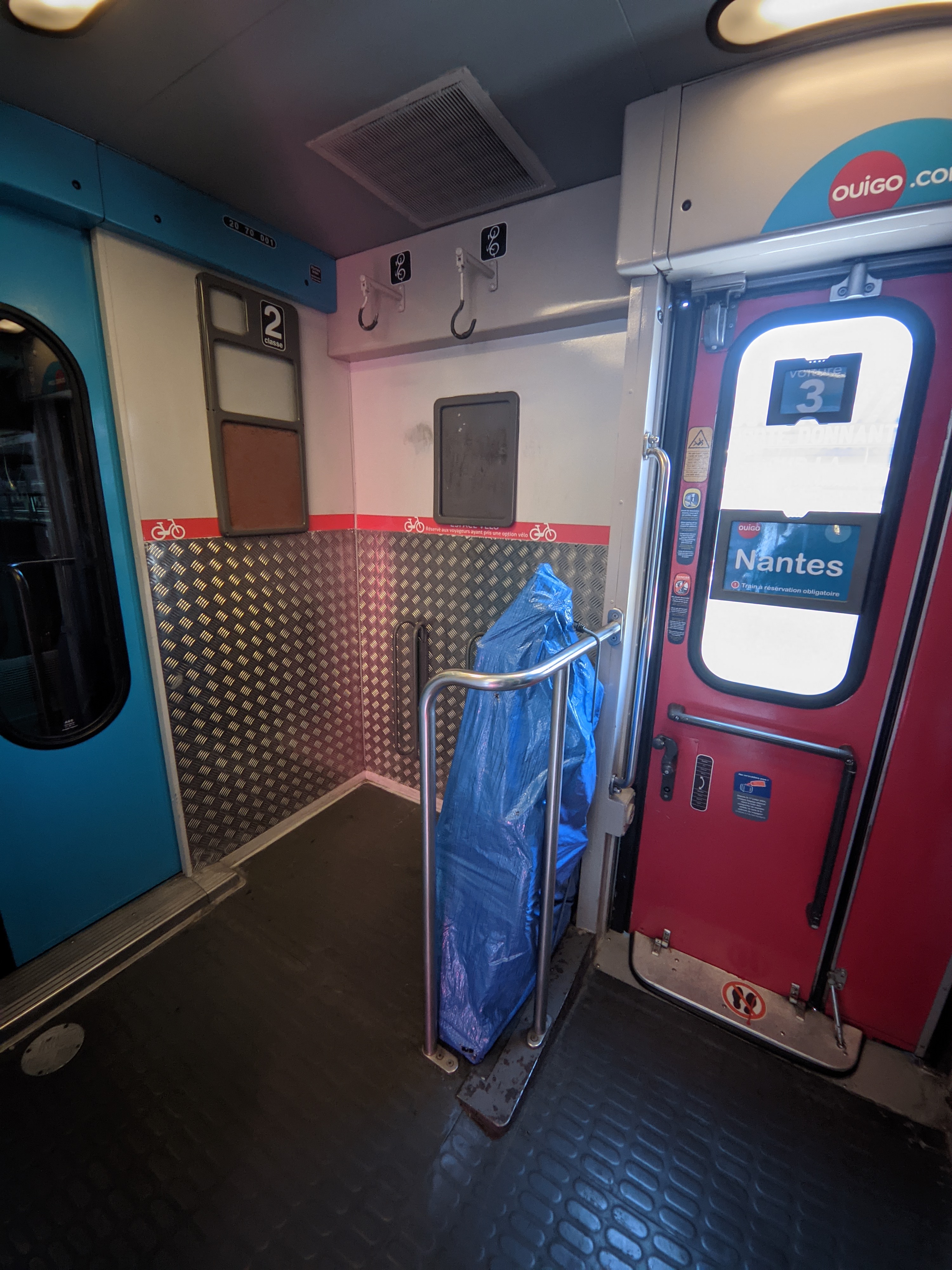 Arrivé, je compacte mon vélo, mais de manière moins efficace qu’à l’aller. C’est un choix stratégique de ma part : ce trajet fait escale à Paris, et il va falloir que je trimballe la bête de Gare du Nord jusqu’à Austerlitz, en 1h15 chrono. En cas de pépin, il me faut pouvoir l’enfourcher pour traverser la capitale.