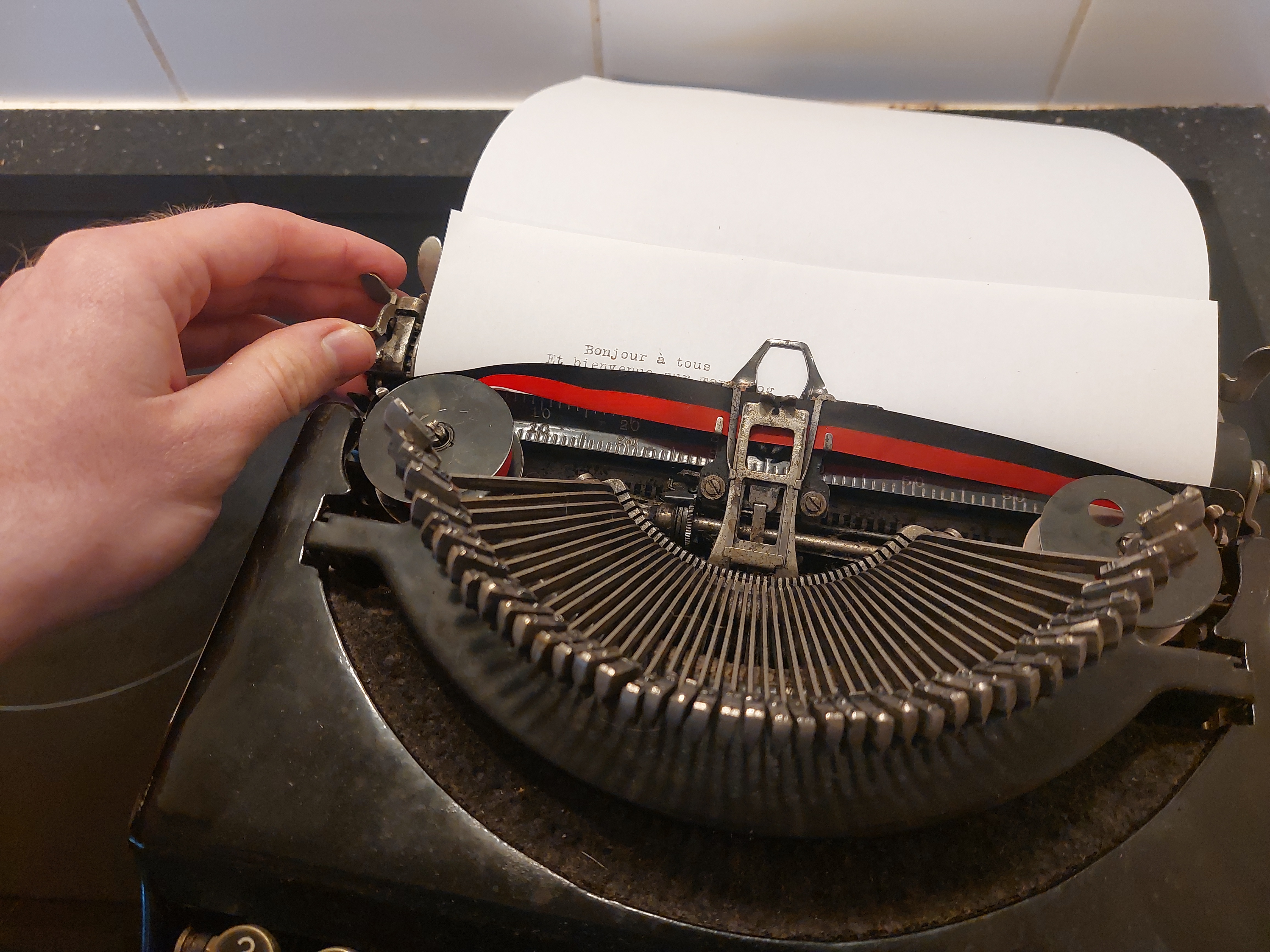 Pour qu’elle soit si compacte, il a été décidé de ne pas inclure de levier de retour à la ligne : il faut pincer de petits leviers et tirer le chariot vers la droite.