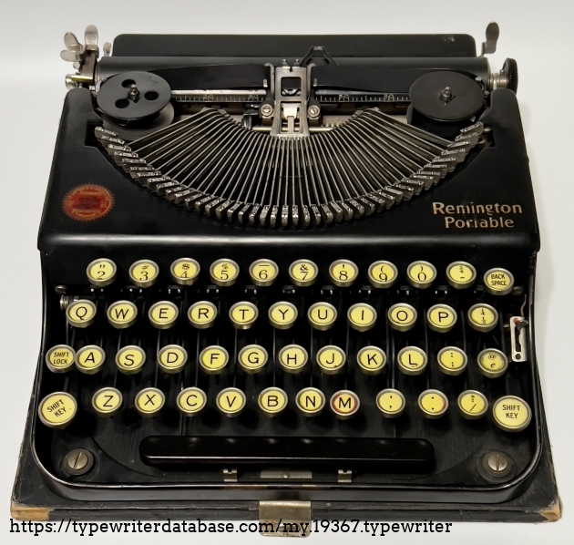 Pour une raison qui m’échappe les logos ont été effacés, mais sont visibles en filigrane, comme s’ils avaient été repeints. La voilà comparée à une autre Remington Portable :